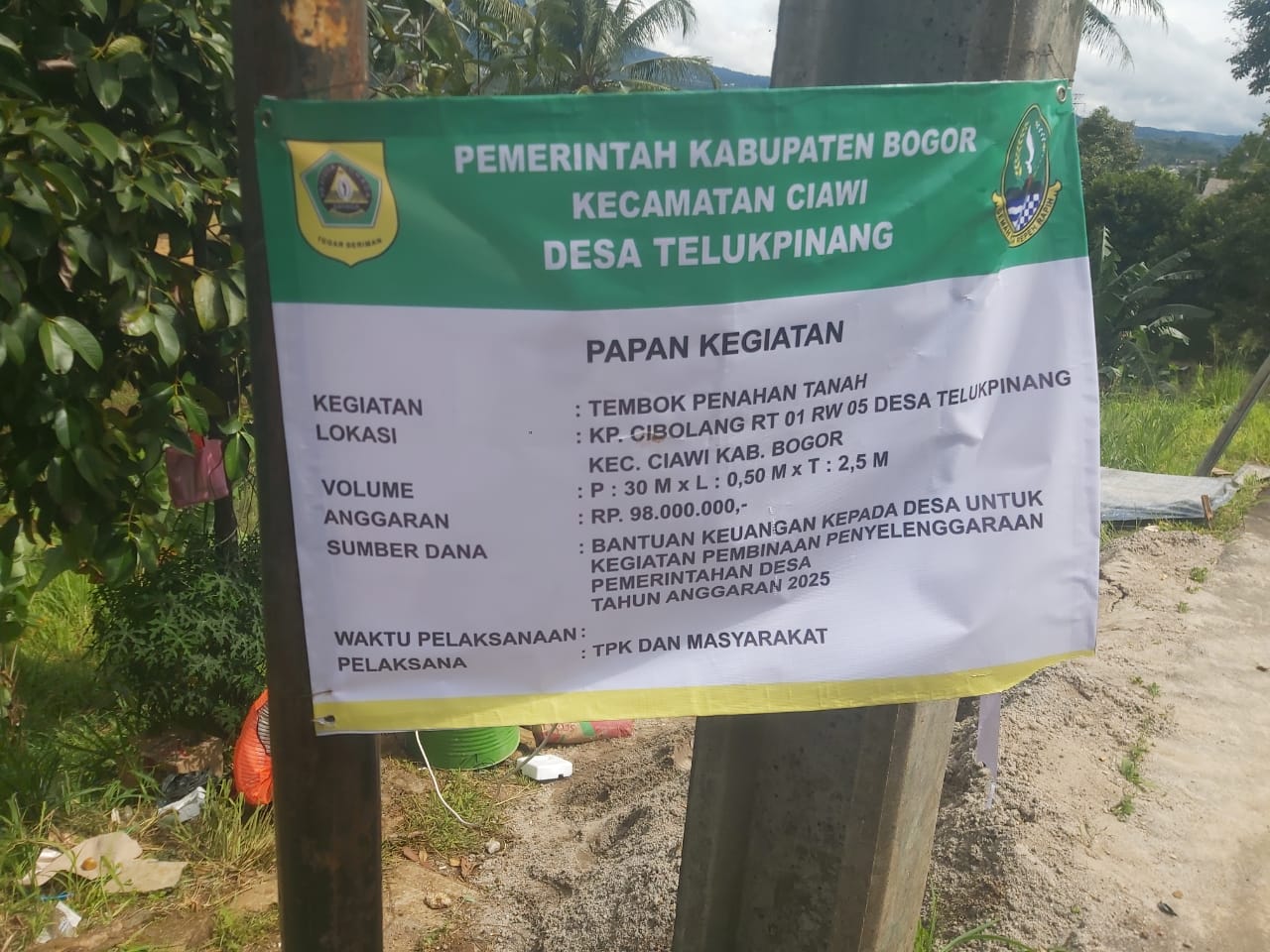 Busertargetkriminal– Pembangunan Tembok Penahan Tanah (TPT) yang berlokasi di Kampung Cibolang RT 01 RW 05, Desa Teluk Pinang, Kecamatan Ciawi, menjadi sorotan warga. Proyek yang bersumber dari dana bantuan provinsi dengan pagu anggaran sebesar Rp 98.000.000 tersebut diduga tidak sesuai antara anggaran dengan ukuran dan volume pekerjaan di lapangan.
